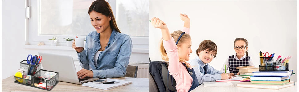 Mesh Desk Organizer Office Supplies Caddy with Pencil Holder and Storage Baskets for Desktop Accessories, 3 Compartments, Black