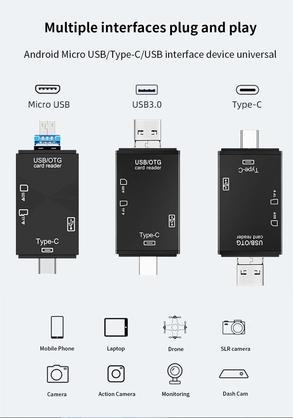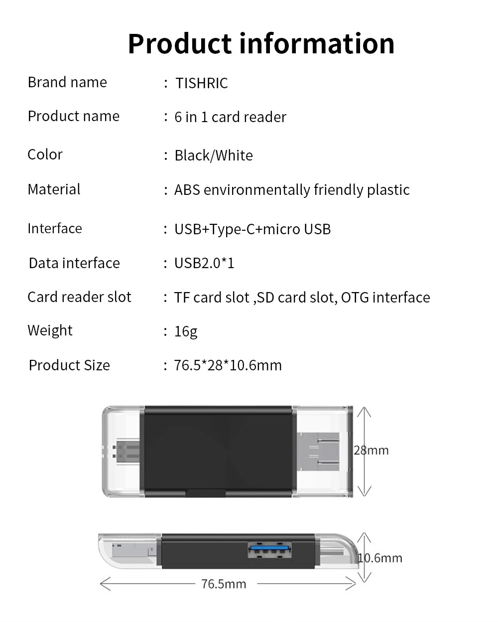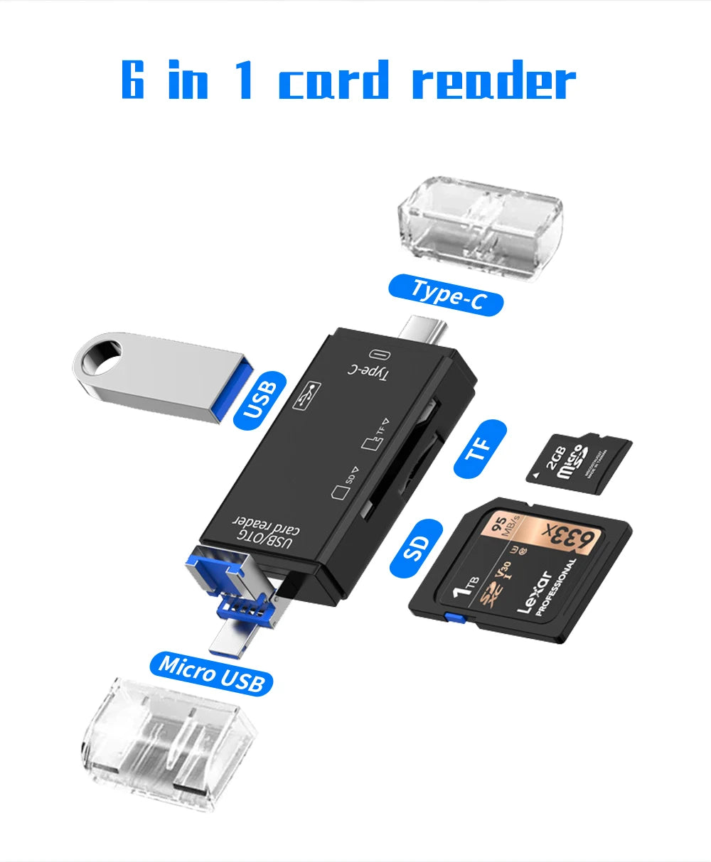 TISHRIC Type C Micro USB Adapter USB TF SD Card Reader USB-C Memory Card Adapter For Macbook Samsung Huawei XiaoMi Laptop Phone